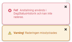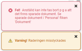I vissa fall går det inte att ta bort anställda och användare då det finns sparade loggar i HRM eller något annat som spärrar. En varning fås som talar om när det händer.