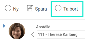 Ta bort en anställd gör du via ikonen Ta bort högst upp i HRM.