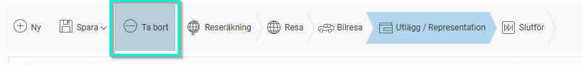 För att ta bort hela reseräkningen så väljer man i meny Mer funktionen Ta bort reseräkning.