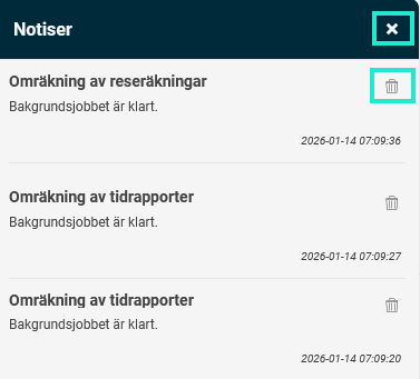 Om du vill ta bort en enskild notis klickar du på papperskorgen.