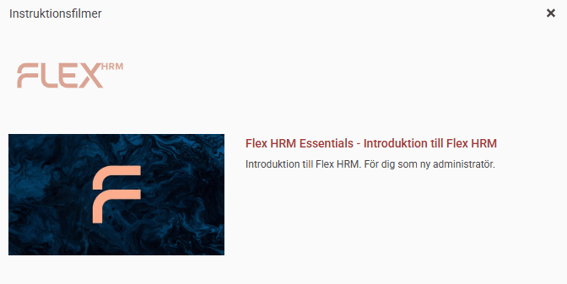 Användare i Flex HRM kan se instruktionsfilmerna via Hjälp, klicka på Instruktionsfilmer.