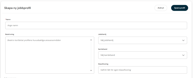 - Börja med att fylla i namn och beskrivning på arbetet i jobbprofilen
