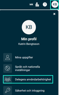| Du hittar funktionen Delegera användarbehörighet under din profilbild. | ![]() |