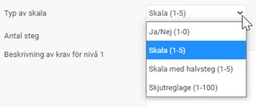 Väljer du en graderingsskala kommer ytterligare ett val upp under Typ av skala där du väljer hur många steg graderingen ska vara.