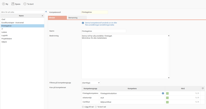 Under Register - Kompetensroller skapar du upp företagets kompetensroller