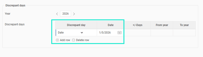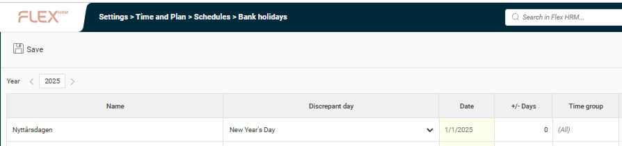 Remember to select the year, for exemple 2026. If you have used some of the fixed days under the deviation day column, these will be automatically updated for all upcoming years and no manual change is required.