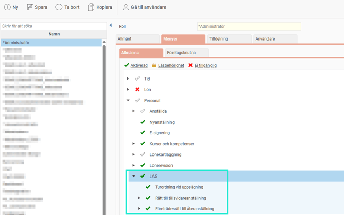 För att aktivera någon av LAS-vyerna behöver du först aktivera den på aktuella roller:
