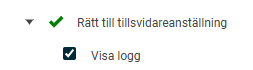 Bockar du även i Visa logg enligt nedan, för Rätt till tillsvidareanställning, blir aktuell roll behörig till information i loggen för samtliga anställda i den listan dvs inte bara för de anställda rollen har behörighet till. Läs mer om loggen i separat avsnitt.