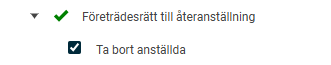 Bockar du i Ta bort anställd för listan Företrädesrätt till återanställning har du möjlighet att ta bort en anställd ur den listan.