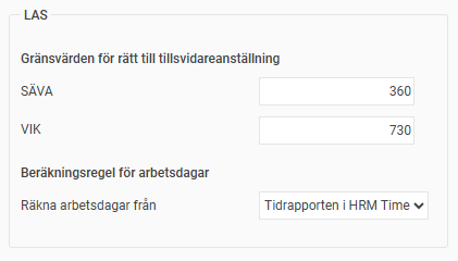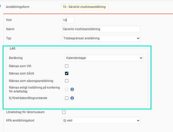 För att hantera beräkningen i HRM krävs att du ser över inställningarna LAS under Inställningar > Personal > Anställningsformer.