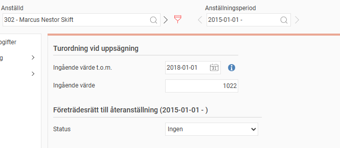 Ingående värde för Turordning vid uppsägning