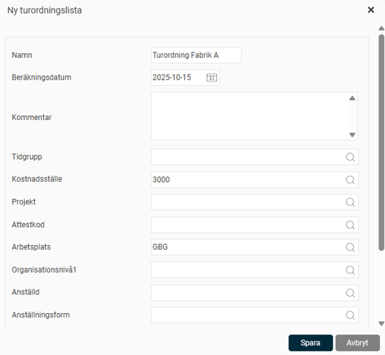 Lägg till anställd – visar anställda som ännu inte är del av turordningslistan, vald anställd läggs till i turordning. Du måste sedan manuellt trigga omräkning av hela turordningen när alla anställningar som ska med är tillagda.