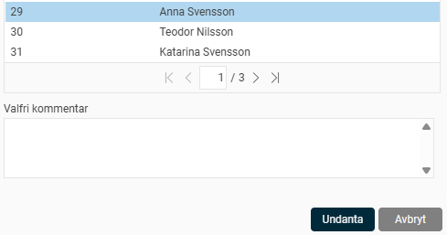 Notera: för att ångra ett undantag i listan behöver du först ta bort den anställde från listan för att sedan lägga till den igen, vilket då kräver omräkning.