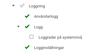 Du ställer in behörigheten för loggen på användarens roll. Där kan du ställa in två olika nivåer: