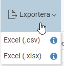 Du kan exportera de loggrader som visas (baserat på ditt urval) genom att klicka på Exportera i verktygsfältet. Du kan välja mellan formaten .csv och .xlsx.