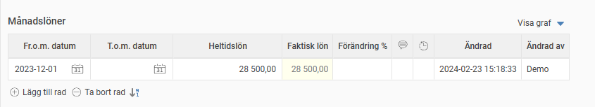 I anställdaregistret ser du vem som har ändrat på fältet månadslön längst till höger.