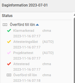 Du kan även se en logg för vem som granskat tidrapporten.