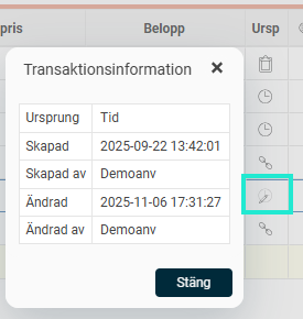 Du kan även se när en ändring är gjord och av vilken användare på flera ställen i systemet. Till exempel kan du se ändringar i egna loggar i vyerna anställdaregistret, tidrapporter och löneberedning.