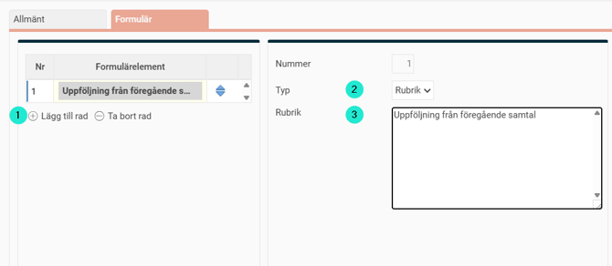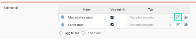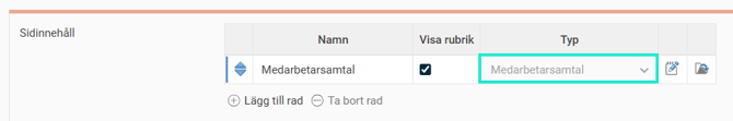 - Lägg till rad med önskat namn och välj typen Medarbetarsamtal.