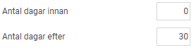 - Därefter anger du antal dagar före och efter tidpunkten för samtal man ska se påminnelsen på startsidan. Påminnelsen för att dela samtal kan t.ex. ställas in så att man får den ett antal dagar före samtalet, och påminnelsen för signering efter det att samtalet hållits.