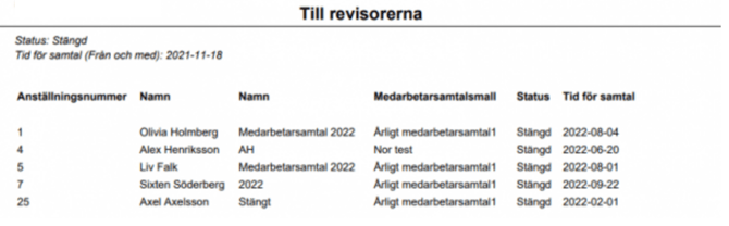 Här ser du vilka medarbetarsamtal som är stängda under de senaste 365 dagarna.