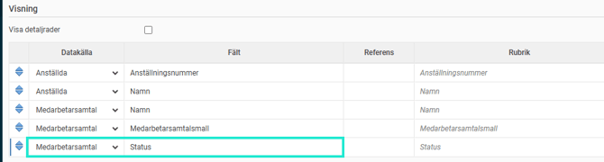 För att kunna följa upp status på medarbetarsamtal och formulär finns dessa två tillgängliga som datakällor (eller egentligen som underkällor till datakällan Anställda) i rapportgeneratorn.