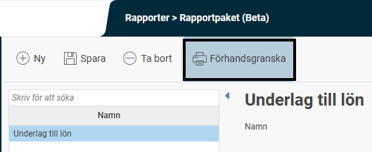 Under Rapporter > Rapportpaket (Beta) skapar och konfigurerar du de paket ni vill använda genom att lägga till önskade rapporter med urval i respektive paket.