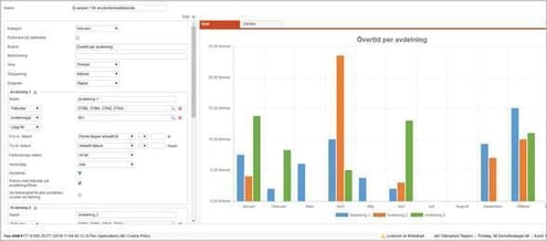 Det första exemplet visar hur det kan se ut om du vill se hur mycket övertid det har jobbats på olika avdelningar fördelat per månad.