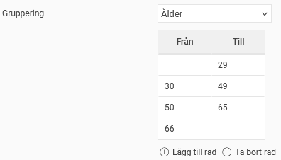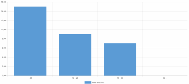 Fördelning mellan kön och ålder är intressanta faktorer för att få en lagom blandning inom ett arbetslag. Vid gruppering på ålder kan du själv välja vilka åldersgrupper du vill använda.