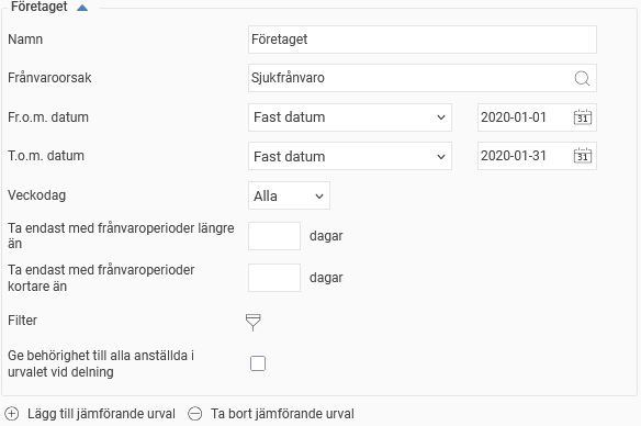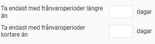 På dessa ställen har vi lagt till val för Ta endast med frånvaroperioder längre än... dagar och Ta endast med frånvaroperioder kortare än ... dagar.