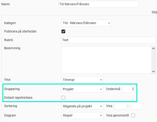Om du använder ett utökat projektregister och väljer att gruppera på projekt kan du nu välja på vilken undernivå du vill gruppera. Genom att kunna gruppera på valfri undernivå kan du dela upp grupperingen enligt önskemål.
