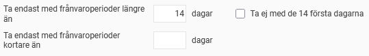 Det går även bra att kombinera dessa två inställningar för att t.ex. bara ta med frånvaro längre än 14 dagar, men kortare än 91 dagar, vilket man ibland vill följa upp.