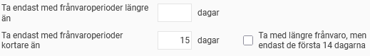 Väljer du att endast ta med frånvaroperioder kortare än 15 dagar kommer endast dem tas med.