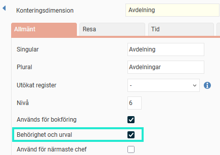De konteringar du delar till är de anställdas hemkonteringar och de konteringsdimensioner som har inställningen Behörighet och urval (Inställningar > Allmänt > Konteringsdimensioner) ibockat.