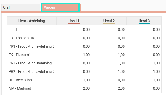 Vill du istället se statistiken i form av värden klickar du på fliken Värden.