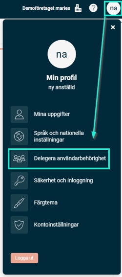 Gå till dina Min profil > Delegera användarbehörighet.