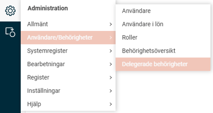 Gå till Administration > Användare/Behörigheter > Delegerade behörigheter.