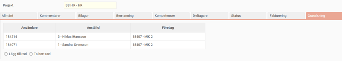 De användare som ska delattestera behöver ha en roll som ger dem behörighet för delattestering och till vyn för delattestering. Förutom detta måste du också ställa in vilka projekt varje användare är behörig att delattestera. Detta görs i användarregistret, fliken Konteringsgranskning, eller i projektregistret, fliken Granskning.