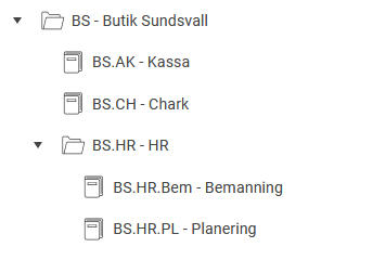 BS(huvudprojekt) >BS.HR(delprojekt) >BS.HR.Bem(registrerbart projekt).
