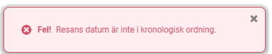 Ett exempel är om det finns en inställning som kräver att ett ärende måste anges på resor. Du kan då spara en resa utan ärende, men du måste lägga till ett ärende för att reseräkningen ska kunna granskas.