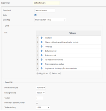 Man kan få med deltidsfrånvaro enligt följande exempel på Exportmall