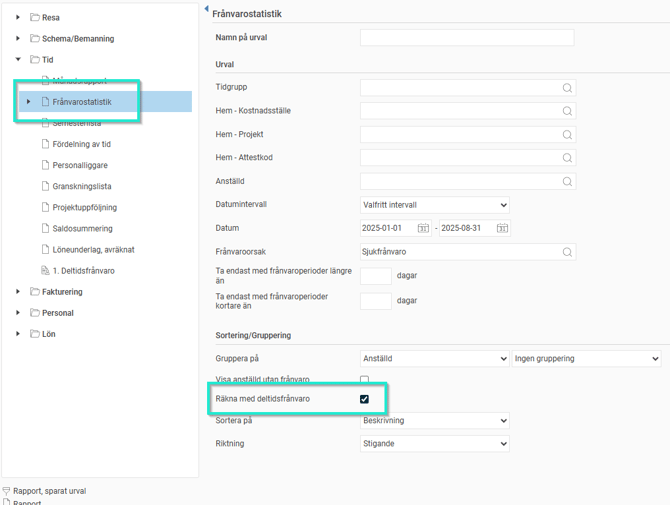 - Markera alternativet "Räkna med deltidsfrånvaro"