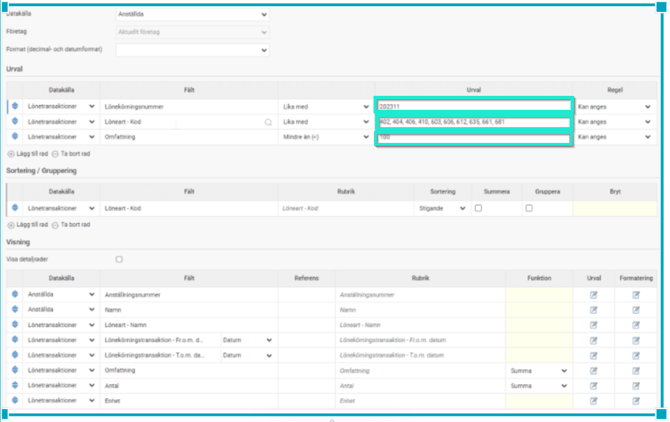 Rapportgeneratorn - Datakälla Anställda/Lönetransaktioner