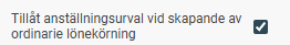 Använd den här inställningen om du vill kunna skapa en ordinarie lönekörning med endast ett visst antal anställda. OBS. Tänk då på att du behöver komplettera lönekörningen för att få in samtliga anställda vid ett senare tillfälle.