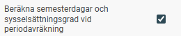 1. Automatisk semesterberäkning Om du använder inställningen för att automatiskt beräkna om semester vid avräkning av lön (för anställda med sammanfallande semesterintjänandeår), görs en ny beräkning av både antalet semesterdagar och den genomsnittliga sysselsättningsgraden för intjänandeåret. Denna inställning görs under Inställningar > Lön > Lönekörningar.