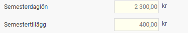2. Värdet på semestern ändras Den nya beräkningen av sysselsättningsgraden under intjänandeåret kan i sin tur påverka värdet på semesterlön och semestertillägg för uttagen semester i den aktuella lönekörningen. Du hittar dessa uppgifter under fliken Semester i anställningsregistret.